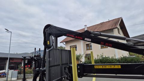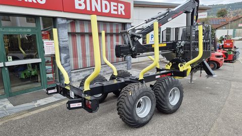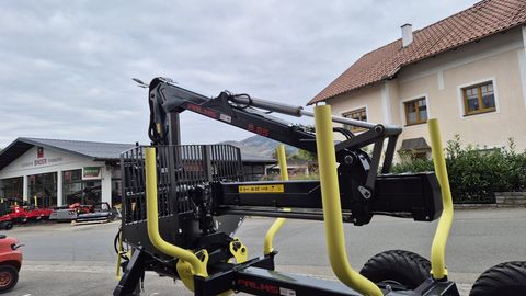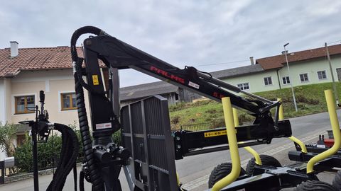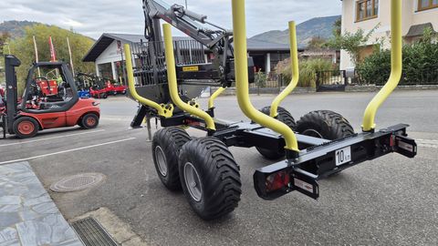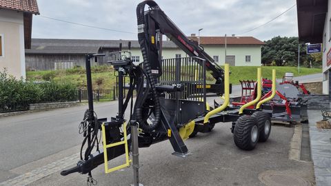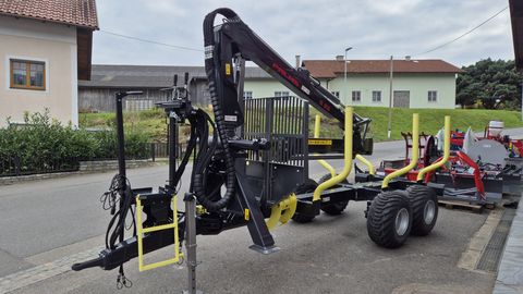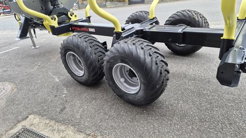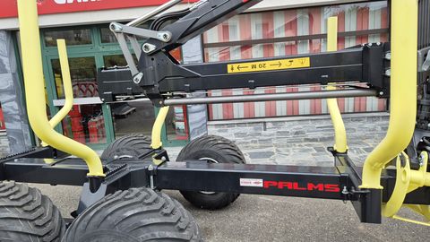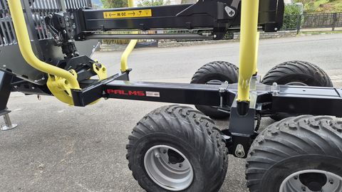 PALMS Forstanhänger H9SC+ Palms Forstkran K5,85 Hänger PALMS H9SC mit 10,6to Nutzlast, überdim. 200x200 Zentralrohr-Rahmensystem, 4,00m Ladeflächenlänge mit Rahmenauszug extra, Tandemachse mit ADR-Achsen Forst-Bereifung 400/60-15,5 Terra-Profil mit verstärkten Forstfelgen und schraubbarem Ventilschutz, 2 Rad hydr. Bremse auf Vorderachse, verschließbare Beleuchtung, 3 Paar massive, drehbare gelbe Rungenpaare mit Rungenverlustsicherung, Lenkdeichsel mit 2 Zylinder, Untenanhängung mit Scharmüller Zugöse, stabiles Frontgitter, mit montiertem PALMS PROFI-Forstkran K5.85 mit Doppelteleskopausschub - 8,50 m Reichweite, Super-Hubkraft bei 4m 1.150kg, massiver Hubzylinderschutz, 4 Zyl. Gußschwenkwerk in Ölbad laufend mit sagenhaften 17kNm Schwenkmoment, starker 5,0 to Rotator, große und breite 145cm große Forstzange, doppelte Pendelbremse, 370° Schwenkbereich, Weitwinkelgelenk aus Hardox Stahl, stabile A-Abstützung, Elektro ON/OFF-Steuerung, klappbares Stehpodest mit 1-Click Aufstiegsleiter, Steuergeräthalterung, und klappbarer Rückenstütze . PS : PALMS Forstkräne und Hänger werden aus STRENX Stahl ( bester schwedischer Feinkornstahl ) gefertigt - auch TOP Ergebnis bei Landwirt Test !Zul. Gesamtgewicht (kg): 12000