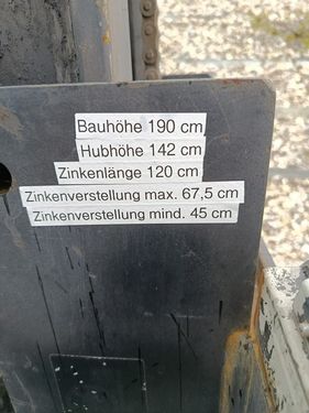 Bauhöhe 190cm Hubhöhe 142cm Zinkenlänge 120cm 3 Punkt-Anbau Zinken mechanisch verstellbar Die Fa. Kaufmann zeigt Ihnen die Maschine bzw. Gerät gerne am Betrieb und bittet um eine Terminvereinbarung telefonisch oder per Mail. Wir sind unter Absprache auch samstags für Sie da.Kontaktdaten: