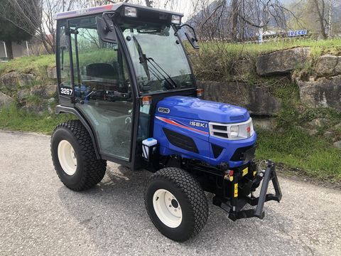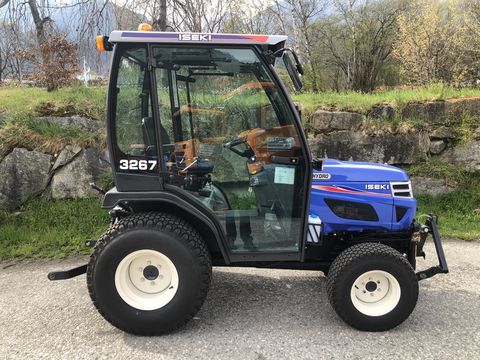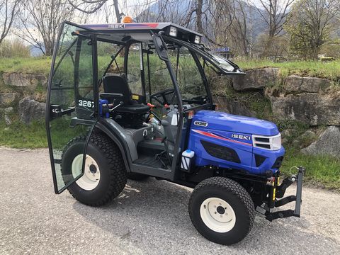 ISEKI TM 3267 AHLK (mit Kabine) mit neuer Typengenehmigung: Motor und Antrieb: - Leistung: 18,7 kW (ca. 25 PS) bei 2.500 U/min - Hydrostatgetriebe mit Zwei-Pedal-Steuerung - Zwischenachszapfwelle 2.000 U/min Hydraulik: - Bedienhebel für Heckhydraulik im Kotflügel - Mechanisches Hydraulikventil mit 2 Funktionen (2x doppelwirkend mit Schwimmstellung) - Bedienung über zwei Einzelhebel im rechten Kotflügel Ausstattung: - StvZO-Ausrüstung - 7-polige Anhängersteckdose - Betriebsstundenzähler - Kraftstofffüllstandsanzeige - Motortemperaturanzeige - Höhenverstellbare Maulkupplung Kabine: - Sicherheitskabine mit CE-geprüftem Sicherheitsrahmen - 4-seitige Sicherheitsverglasung und Sonnenschutztönung - Aushängbare Türen mit breitem Einstieg - Schwingungsgedämmter Rahmen in Silentblöcken - Rutschsicherer Gummibelag auf Bodengruppe - Scheibenwischer, 2 große Außenspiegel - Sonnenrollo und Kleiderhaken - Aufstellbare Front- und Heckscheibe mit Gasdruckdämpfern - Warmwasserheizung mit 2-stufigem Gebläse und einstellbaren Luftdüsen - Komfort-Innenausstattung mit schalldämmender Verkleidung - Vorbereitung für Rundumkennleuchte - Scheibenwaschanlage vorne - Trittstufe links Reifen: - Vorn: 24 x 8.50 - 12 - Hinten: 315 / 75 D15 Abmessungen: - Außenbreite: 1.228 mm - Bügelhöhe: 2.393 mm - Kabinenhöhe: 2.028 mm Beleuchtung: - Rundumkennleuchte mit H4 Leuchtmittel - Zusatzhauptscheinwerfer - 1 LED-Arbeitsscheinwerfer für hinten Hydraulikfunktionen: - Mechanisches Hydraulikventil mit 3 Steuerfunktionen: DS (doppelwirkend mit Schwimmstellung), D (doppelwirkend), ES (einfachwirkend mit Schwimmstellung) - Frontkraftheber mit Kuppeldreieck Kat. 0 - Doppeltwirkende Hydraulikzylinder zum Heben und Senken - Hubkraft: 450 kg - 2. HubzylinderKontaktdaten:
