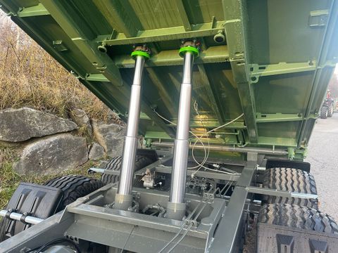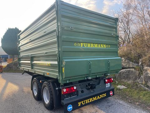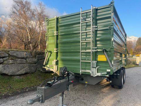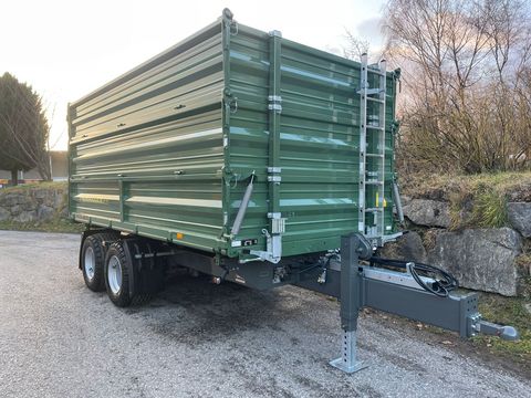 Tandem-3S-Kipper Fuhrmann 15 Tonnen Baujahr: 2025 ! - höchstzulässiges Gesamtgewicht: 15 Tonnen - Plateaugröße: 4550 x 2350 mm - Aufbau: Stahlbordwände 600 + 600 mm, Pendelwand links rechts und hinten, Ecksteher, Getreideschieber hinten, Bordwandschließfedern, Integral Bordwandverstärkung SW unten, abklappbare Aufsatzwände, Stirnwände teilbar, - Stahlboden: 5 mm - Kippeinrichtung: hydr. Dreiseiten-Kippanlage, 2 Stk. Kippzylinder, Hubbegrenzungsventil - Bremseinrichtung: Zweileiter-Druckluftbremse / Feststellbremse - Abstützung: Sattelstützwinde mit 2 Geschwindigkeiten - Anhängerkupplung: Steckbolzen-Abschleppvorrichtung hinten - Bereifung: 19.0/45 R 17 AW (18 Ply) - Lackierung: Unterbau: FF-Grau / Aufbau: FF-Grün / Felgen: Silber - Typenschein: 25 km/h Landwirtschaft + Hydr. Rückwandklappe 2 Zylinder, doppelw., 400 mm hoch, HARDOX-Innenblech, mit Sperrblock, ohne mech. Verriegelung, ohne Getreideschieber, hintere Stahlaufsatzwand 800 mm hoch, + Zurrmulde im Plateau versenkt, 2500 kg nach DIN EN12640, Längsrichtung der Länge nach aufgeteilt, Querrichtung so weit außen wie möglich + Flanschzugöse für Zugkugelkupplung K80, Lochbild 110 x 100 + Gleitecken für Seitenwände hinten, für untere Stahlbordwände 1,00 GAR + Pendelbolzen schraubbar + 2. Garnitur Stahlaufsatzwände 600 mm + 40 km/h Ausführung TD 13-20to, nur mit 2L-Druckluftbremse, mit ALB, Kotflügel, Unterfahrschutz hinten, 40 km/h Lichtanlage, Typisierung (LoF Österreich) + Typenschein auf 14 to Gesamtgewicht, Achsen hinter Kippzylinder (Stützlast ca. 2000 kg)Zul. Gesamtgewicht (t): 15