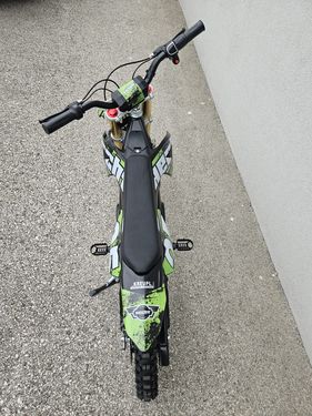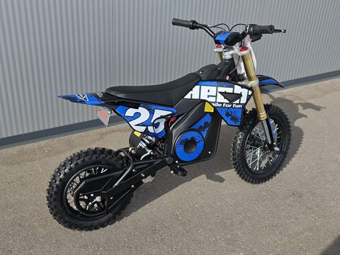 Hecht 59100 Blue Elektro Pocketbike – Kompaktes Design, große Leistung. Das Hecht 59100 Blue Elektro Pocketbike vereint leistungsstarke Technik mit sportlichem Design. Mit einem 1000-Watt-Elektromotor, einer Geschwindigkeit von bis zu 28 km/h und einstellbarer Federung ist dieses Pocketbike perfekt für junge Fahrer und Abenteuer auf Privatgrundstücken oder speziellen Strecken. Nicht für den Straßenverkehr oder die StVO zugelassen. Hauptmerkmale: *Leistungsstarker Elektromotor: Der 1000-Watt-Motor bietet ein Drehmoment von 2,63 Nm, ideal für schnelle Starts und hohe Performance. *Hohe Geschwindigkeit: Mit einer stufenlos regelbaren Geschwindigkeit von bis zu 28 km/h. *Einstellbare Federung: Optimale Stoßdämpfung für eine komfortable und sichere Fahrt. *Maximale Kontrolle: Scheibenbremsen an Vorder- und Hinterachse sowie eine Bodenfreiheit von 250 mm sorgen für Stabilität auf jedem Terrain. *Effizienter Akku: Mit einer Reichweite von bis zu 15 km und einer Ladezeit von 8–12 Stunden für langanhaltenden Fahrspaß. Technische Daten: Farbe: Orange, Blau, Grün Maße (LxBxH): ca. 1330 x 640 x 865 mm Gewicht: ca. 42 kg Max. Belastung: 65 kg Sitzhöhe: ca. 620 mm Bodenfreiheit: ca. 250 mm Akku Spannung: 36 V Akkukapazität: 12 Ah Akku Ladezeit: ca. 480 min Laufzeit: ca. 15 km Max. Geschwindigkeit: 28 km/h Spannung: 36 V Ladezeit: 8 h Vorteile auf einen Blick: *Leistungsstarker Motor für sportliche Performance *Kompakte Bauweise und modernes Design *Sichere Fahrt dank hochwertiger Bremsen und Federung *Langlebiger Akku mit Ladeanzeige im Griff *Perfekt für junge Fahrer auf privaten Strecken *Für Abenteuer abseits der Straßen Das Hecht 59100 Blue Elektro Pocketbike ist der ideale Einstieg in die Welt der Elektromobilität. Bitte beachten Sie, dass dieses Fahrzeug nicht für den Straßenverkehr oder die StVO zugelassen ist. Kinder-Elektro-Bike, Kinder Elektro Bike, Kinder Elektro-Bike, Kinder-Elektro Bike, Bike, Elektrobike, EBike, E-Bike, Kinderbike, Kinder-E-Bike, Kinder-Elektro-Cross, Kinder Elektro Cross, Kinder Elektro-Cross, Kinder-Elektro Cross, Cross, Elektrocross, ECross, E-Cross, Kindercross, Kinder-E-Cross, Kinder Motocross, Motocross, Kinder-Motocross Sicherheitshinweise: *Das Fahrzeug ist nicht für den öffentlichen Verkehr zugelassen, die Benutzung im Bereich der StVO ist nicht gestattet. *Nur mit ausreichender Schutzausrüstung fahren! *Benutzung nur auf Privatflächen oder gekennzeichneten Rennstrecken. *Wir übernehmen keinerlei Gewährleistung für die unsachgemäße Handhabung des Fahrzeugs sowie Erstmontage durch den Kunden. Änderungen und Irrtümer vorbehalten!!Kontaktdaten: