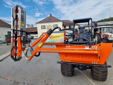 Kreissäge/Astschneider/Heckenschneider mit 140cm Kreissäge (4 Sägeblätter mit jeweils 40cm Blattdurchmesser) Gelenk mit hydraulischer Drehung 225° Hydraulischer Seitenverschub (Teleskopausschub) Reichweite zur Seite bis zu 260cm ab Fahrzeugmitte Profi-Joystick Steuerung Elektroproportional Antikavitaionsventil Abstellfüße erforderliche Hydraulikleistung ca 40-50 lt/min Passend für Hoflader aller Marken Alle Aufnahmen möglich: EURO, FUCHS, Weidemann, Schäffer, Cast, Avant, Thaler, Giant und viele mehr. Extrem leichtzügig! Nur 270 Kg Eigengewicht. Viele weitere neue und gebrauchte Hofladeranbaugeräte in Tarsdorf lagernd.Kontaktdaten: