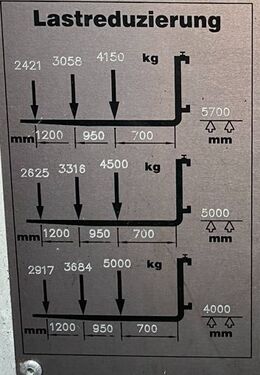 Bauart: Seitenstapler / Seitenstapler, Tragkraft: 5000kg, Hubhöhe: 5700mm, Bauhöhe: 2760mm, Freihub: 1900mm, Gabellänge: 1390mm, Bereifung vorne: Luft Einfach 80 - 100% , Bereifung hinten: Luft Einfach 80 - 100% , Sonderausstattung: Arbeitsscheinwerfer hinten, Arbeitsscheinwerfer vorn, Heizung, Vollkabine,Kontaktdaten: