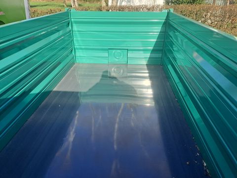 #ÖHLER OL EDK 65 ECO# -Fahrgestell: C-Rahmen geschlossen -Bremse: Hydraulische Ölbremse (Exportausführung) -FAD: 25 km/h -Bordwände: Stahlbordwände abklappbar, mit Scheuerleiste, -Kornschieber -Brücke: Zentralverriegelung hinten, geschraubte Eckrungen -Achsen: FAD 25km geeignet, Tragkraft 6.800 kg; ungefedert, 300x60mm, Vierkant 70mm -Abstützung: klappbares Stützrad -Elektrik: 12 Volt Beleuchtungsanlage, Steckdose hinten -Lackierung: ACC - Tauchgrundierung + Pulverbeschichtung -Kippvorrichtung: 3-stufiger Hubzyl., 1050 mm Hub -hartverchromte Kolbenstange -kardanische Lagerung, -autom. Hubbegrenzung -Aufstiegsleiter -Sonstiges: Unterlegkeile -zul. Gesamtgewicht: 6,5 t -Pritschenmaß innen: 3.500 x 1.800 x 500 mm -Eigengewicht ca.: 1.200 kg -Gesamtlänge: 5.140 mm -Gesamtbreite: 1.950 mm -Grundbordwand: 500 mm -Plattformhöhe ca.: 910 mm -Spurbreite ca.: 1.500 mm -max. Achstragfähigkeit: 6.800 kg bei 25 km/h -Kippzylinderstufen: 3 -Zylinder-Hublänge: 1.050 mm -Zylinder-Stufen Ø mm: 60-75-90 -max. Hubkraft: 12,7 t -max. Betriebsdruck: 200 bar -erford. Ölmenge: 4,8 l -Bereifung: 15.0/55-17 -Aufsatzbordwand 500 mm #LAGERMASCHINE SONDERPREIS# #STANDORT DER MASCHINE: BURGKIRCHEN OÖ# #ZWISCHENVERKAUF VORBEHALTEN# #ALLE ANGABEN OHNE GEWÄHR#Zul. Gesamtgewicht (t): 6,5