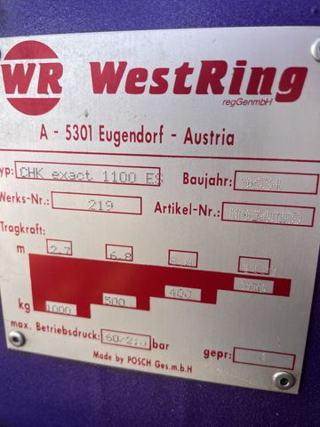 WestRing CHK extra 1100ES - Reichweite 11m - Kreuzhebelsteuerung + Fussbedalsteuerung - Spur 2m - Gabelhochsteller - Greifer 160cm - Arbeitsscheinwerfer LED - HydraulikölkühlerKontaktdaten: