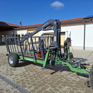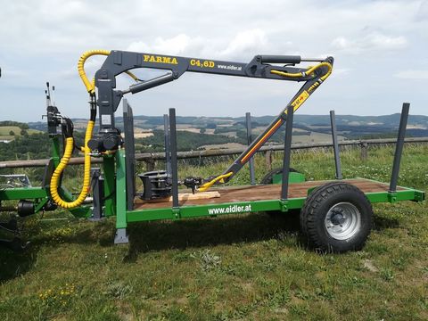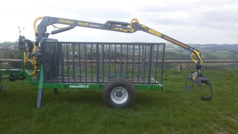 **Eidler Forstanhänger / Rückewagen Modell** **Baujahr:** 2024 **Breite:** 180 cm **Ausstattung und Merkmale:** - **Rahmen:** Doppelrahmen Anhänger - **Kransteuerung:** Kreuzhebelsteuerung - **Anzahl der Achsen:** Einachs - **Endlos Rotator:** Ja - **Holzzange:** Ja **Beispielkonfiguration:** - **Ladelänge:** 3 m - **Breite:** 1,1 m - **Beleuchtung:** Inklusive - **Steckrungen:** 3 links und 3 rechts - **Stehpodest:** Inklusive - **Bereifung:** 300 / 70 x 15,3 AW - **Bremse:** Seilzugbremse - **Forstkran:** Farma Forstkran C 4,6 D mit Euro Steuerung - **Endlosrotator:** 3 to. - **Holzzange:** 0,16 m² **Optional gegen Aufpreis erhältlich:** - Stützrad - Bereifung nach Kundenwunsch - Plateaulänge - Eigene Ölversorgung - Hydraulische Bremse - Forstkran C4,6D G2 oder C5,3D G2 mit Weitwinkelgelenk **Individuelle Anfertigung:** Der Wagen wird auf Kundenwunsch angefertigt, um spezielle Anforderungen und Wünsche zu erfüllen. Siehe Fotos für weitere Details! Eidler Forstanhänger bieten eine robuste und flexible Lösung für die Holzernte und den Transport. Mit der Möglichkeit, verschiedene Ausstattungsmerkmale anzupassen, sind sie ideal für den professionellen Einsatz im Forstbetrieb.Zul. Gesamtgewicht (kg): 0