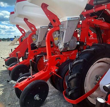 Gwarancja [miesiące] Waga transportowa [kg] Siewnik do kukurydzy 4-rzędowy Ozdoken VPHE DG4 z nawożeniem wglębnym Parametry techniczne: - siewnik 4-rzędowy, rama sztywna, - rozstaw rzędów 75 cm, - podwójne talerze sekcji wysiewających, - podwójne redlice talerzowe do nawozu, - zbiornik nawozowy jednolity Jumbo 750 l z tworzywa, - podwójne znaczniki hydrauliczne rzędów, - wał odbioru mocy, - kontroler wysiewu DigitRoll Seed Master Integra- - 2 komplety tarcz wysiewających (kukurydza), - zestaw drogowy (tablice + światła), - waga 970 kg. -Komputer DigitRoll Seed Master Integra: - monitorowanie przepływu nasion za pomocą fotokomórek, - automatyczny test systemu (liczba fotokomórek, alarm czyszczenia czujników), - 3 moduły kontroli pracy siewnika (sieje/nie sieje; alarm blokującyaktualne ilości wysiewu na hektar; widoczny wykres słupkowy dla każdego rzędu), - test nasion: przeskakuje i podwaja statystyki dla 100 nasion w każdym rzędzie), - wyświetlanie numeru rzędu oraz dźwiękowy alarm blokujący, - 6 progów alarmu dla braku nasion, - możliwość zamrożenia aktualnego stanu wyświetlacza, - wybór rozmiaru nasion do precyzyjnego wykrywania nasion, - funkcja pominięcia sekcji siewnej dla nieużywanych rzędów, - możliwość ustawienia różnych odstępów między nasionami, - licznik hektarów, licznik nasion, średnie wartości ziarna / ha dla obszaru częściowego i całkowitego, - pomiar odległości w metrach. Oferta ważna do wyczerpania zapasów magazynowych. Oferujemy transport na terenie całego kraju. Podana cena jest ceną netto.