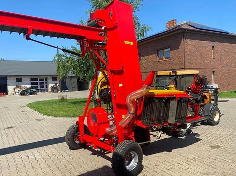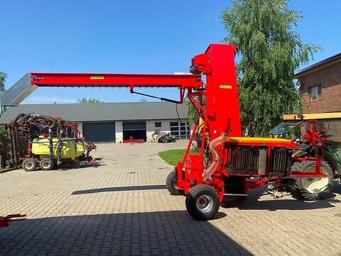 Kombajn przeznaczony jest do zbioru jabłek na plantacjach prowadzonych według wymagań dla plantacji pod zbiór kombajnowy. Parametry kombajnu dostosowane są do plantacji w których odległość między rzędami drzew to minimum 3,5 metra. Kombajn przeznaczony jest również do zbioru jabłek i grusz przeznaczonych do przerobu przemysłowego. Maszyna w standardzie wyposażona jest w: -własny układ hydrauliki, - elektryczną chłodnicę oleju, - podwójnie uchylny wygarniacz boczny, - poziomowanie, wychył elementu podbierającego jabłka, - poziomowanie osi podporowej (lewa i prawa strona osobno), - dodatkowy taśmociąg doczyszczający, - składany oraz podnoszony hydraulicznie taśmociąg podający jabłka do rzędu obok, - rozdzielacz hydrauliczny do sterowania funkcjami hydraulicznymi maszyny, - podnoszony do transportu podbieracz, - bezstopniowa regulacja szybkości wszystkich taśm. Zapotrzebowanie na moc w zależności od wybranej opcji, min 45km Maszynę można doposażyć: - wentylator przedmuchujący pozostałe przy pniu owoce do rzędu obok, - przedni wygarniacz do ciągnika - końcowy element taśmociągu wraz z elastyczną rurą zsypową Oferujemy transport na terenie całego kraju. Podana cena jest ceną netto.