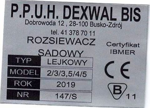 Gwarancja [miesiące] Zapotrzebowanie mocy [KM]: Dexwal rozsiewacz nawozów 300 l - pojemność: 300 l - szerokość robocza: 6-14 m - dźwignia wysypowa - zapotrzebowanie mocy: 14 kW Inne modele dostępne. Oferta ważna do wyczerpania zapasów. Podana cena jest ceną netto.
