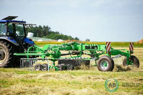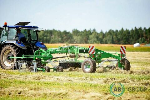 Gwarancja [miesiące] Waga transportowa [kg] Zapotrzebowanie mocy [KM]: Inter-Tech zgrabiarka dwukaruzelowa ZKD 800, GZD01 - Szerokość pokosu: 6,8-7,8 m - Zawieszenie: trzypunktowe TUZ kat. I, II - Tandem / 6 kół na karuzelę - Ilość ramion: 22 szt. - Liczba zębów: 88 szt. - Prędkość WOM: 540 obr./min - Waga: 2250kg - Zaczep skrętny resorowany - Podwozie tandemowe 6-kołowe z kołami kierowanymi - Hydrauliczna regulacja szerokości pokosu - Mechaniczna blokada na uwrociach i podczas transportu - Tablice ostrzegawcze - Oświetlenie - Zabezpieczenie palców - Niezależne podnoszenie karuzeli za pomocą sterownika - Regulacja wysokości grabienia - Osłona brezentowa - Zdejmowane ramiona do transportu Oferta ważna do wyczerpania zapasów magazynowych. Oferujemy transport na terenie całego kraju. Podana cena jest ceną netto.