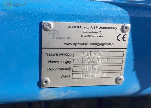 Gwarancja [miesiące] Waga transportowa [kg] Agregat uprawowy 4,2 m Agristal AU -szerokość robocza: 4,2 m -4 rzędy zębów z płynną regulacją głębokości pracy do 12 cm -liczba zębów: 42 -podwójny tylny wał strunowy fi 320 mm -wydajność: 2,0-5,0 ha/h -zapotrzebowanie mocy: 100-120 KM -masa: 1600 kg Wyposażenie dodatkowe: -włóka przednia -światła LED z tablicami Inne modele dostępne