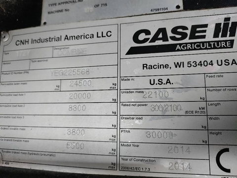 Esmane registreerimine: 22.07.2016 Air conditioning Driver seat air suspension Camera Header trailer Side knife Crop lifters Cutterbar automatic leveling Straw chopper Chaff spreader Electrically adjustable sieves Yield and moisture measuring Drawbar Powerfold hopper Air compressor Fire extinguisher Operators manual available Radio Rotating beaconKontaktdaten: