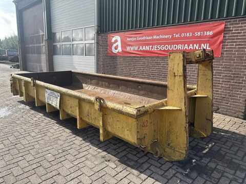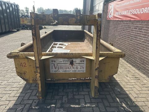 == Overige details (NL) == Haakarm container • Inhoud 6 kuub • Afmetingen 5000x2000x600 mm inwendig • Looprollen • Voorzien van achterklep Staat: Gebruikt Bouwjaar: 2000Kontaktdaten: