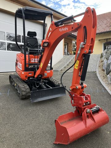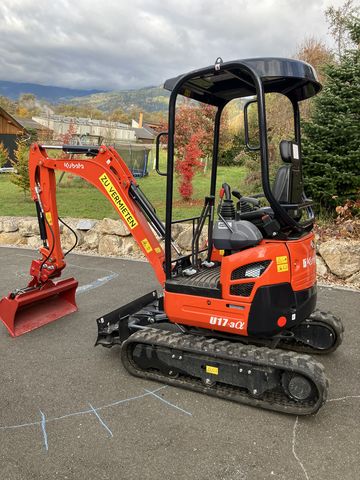 Kubota U17- 4 -Neumaschine -Verstellfahrwerk -Schutzdach abnehmbar -Hammerleitung -mech. Schnellwechsler mit hydr. Böschungslöffel und 25/60 Tieflöffel System Geel/ Martin Weitere Auskünfte per Telefon oder WhatsAppKontaktdaten: