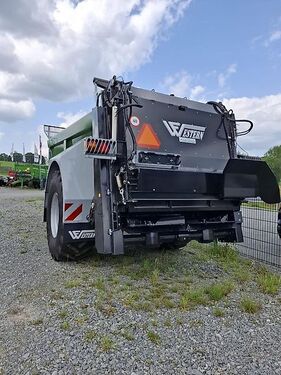 Technische Daten WF 12DSH Gesamtlänge (m) 9,0 Ladehöhe (m) 2,9 Ladevolumen mit Aufsätzen 300mm (m³) 16,5 Nutzlast (t) 12 Streuweite (m) 12-24 Eigengewicht (kg) 5600 Anzahl der Achsen 1 Achsquerschnitt (mm) 150x150 Bremse (mm) 406x120 Standardausstattung 21 tonnen längsgefederte Zugdeichsel konische Mulde in Läne und Höhe hydraulischer Stauschieber 2x horizontale (liegende) Walzen Streuscheiben (HARDOX) 1000mm Durchmesser 6 mm Stahlboden, 4 mm Seiten 2x hydraulisches Getriebe für den Bodenantrieb mit variabler Geschwindigkeit sowie Richtungswechsel 2 oder Wahlweise 4 Hochleistungsketten / Kettenbruchlast 32 Tonnen Reinigungsbürste am Schubboden 2 Leiter Druckluftbremse mit ALB Feststellbremse Stahlkotflüge LED-Straßenbeleuchtung und Reflektoren mit automatischer Abdeckung Seiten/Umrissleuchten Inspektionsleiter Weitwinkel-Gelenkwelle(1000 U/min) (1 3/8''-Z6 Traktorseite) ISOBUS ARNEUBA Landtechnik und Fahrzeuge GmbH Vertrieb und Service