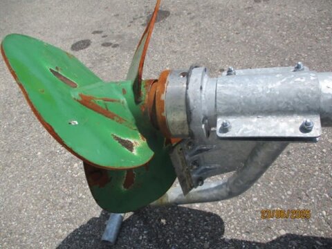 Güllerührwerk zum Einschwenken für geschlossene Behälter mit hydraulischer Tiefenverstellung, 6 m Länge, Flügel Ø 600,Querschneidmesser, Gelenkwelle