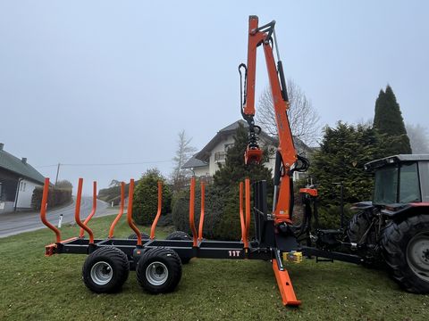 MTM 11T -11 Tonnen Gesamtgewicht - Doppelrohrrahmen 2x (200x100x6) - Flap down Abstützung - 1x zusätzliches Rungenpaar - Hydraulische Bremse auf einer Achse - Untenanhängung mit Scharmüller Flanschzugöse - Rahmenverlängerung - LED Rücklichter klappbar - Simol Kurbelstützfuß - Öltank 90 Liter - Axialkolbenpumpe 107ccm - Klapppodest - 400/60 - 15,5 Bereifung - Forstfelgen mit Ventilschutz - Knickdeichsel mit zwei Zylindern MTM 7100 Forstkran - 7,1m Reichweite - Hubkraft ohne Greifer und Rotator bei maximaler Reichweite 650 KG - Hubkraft ohne Greifer und Rotator bei 4 Meter Reichweite 1260 KG - 4 Schwenkzylinder - Arbeitsdruck 190 Bar - Holzzange G22 1368mm maximale Öffnungsweite 85mm minimal - Rotator 45kN mit Pendelbremse - Bucher HDS Steuerventil On Off - alle Schläuche gut Geschütz Maschinen können aber auch ganz individuell zusammengestellt werden, einfach unverbindlich Anfragen. Top Qualität aus Estland. Überzeugen Sie sich selbst. Überzeugen sie sich von der Qualität unserer Produkte. Für einen Besichtigungstermin melden sie sich vorher bitte kurz telefonisch an. Wir beraten sie gerne. Irrtum und Zwischenverkauf vorbehaltenZul. Gesamtgewicht (kg): 11000