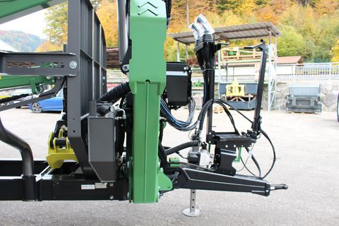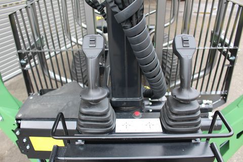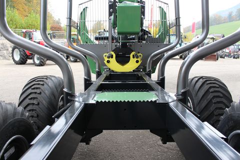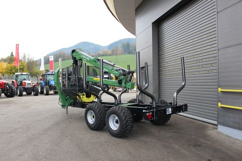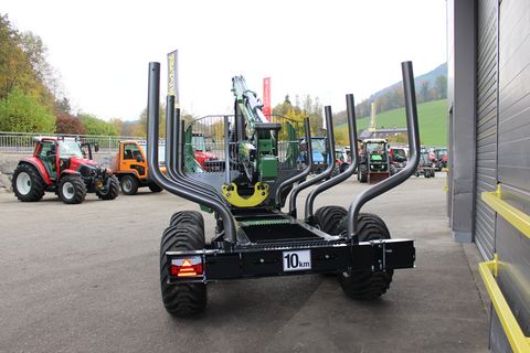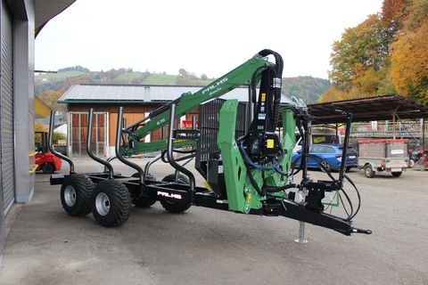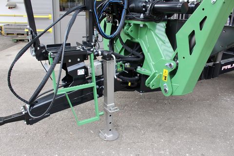 Palms GL 10D Forstanhänger Serienausstattung: # Schwenkdeichsel mit 2 Zylindern # 4 Rungenpaare # Rahmenauszug # Untenanhängung mit Zugöse 40 mm # LED Lichtbalken mit klappbarem Lichtschutz # Bereifung 400/60-15.5 auf Forstfelgen # Eigenölversorgung mit Stehpodest und Steuerblockhalterung # Bolster Lock Palms GL 6.75 Forstkran Serienausstattung: # Flap-Down Abstützung B6.1 # 55 kN Flanschrotator # Doppelte Pendelbremse # Greifer 145 cm C3 # Vorbereitung für Kranseilwinde Sonderausstattung montiert: # Kurbelstützfuß # Prehydraulik Walvoil - Kransteuerung # 4-Rad Bremse hydr. # LED ArbeitsscheinwerferZul. Gesamtgewicht (kg): 13000