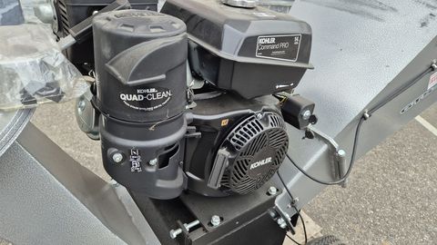 Ausstellungsgerät - NEUER Häcksler EcoLine GT 2000 PRO Durch seine massive und stabile Bauweise ist es ein besonders robustes Gerät, welches auch für den gewerblichen Einsatz geeignet ist. Der Schredder wiegt im betriebsfertigen Zustand 203 kg, lässt sich jedoch trotzdem leicht bewegen - bedingt durch die großen Gummireifen und die ausgeklügelte Gewichtsverteilung durch den in der Mitte angeordneten leistungsstarken Motor. Auch kleinere Wege und Türen sind für den GTS-2000pro kein Hindernis da die Gesamtbreite lediglich 66 cm beträgt. Dank des überarbeiteten Auswurfschachtes, der sich um 180° drehen lässt, lassen sich die Hackschnitzel direkt auf einen Anhänger abwerfen. Somit entfällt ein mühseliges Umschichten des Schreddergutes vom Boden per Hand auf einen Anhänger. Die Wurfweite kann am Auswurf selbst noch eingestellt werden. Je nach Holzbeschaffenheit und -Art verarbeitet der Schredder Äste mit einem maximalen Durchmesser von bis zu 12 cm! Durch die 2 auf einer schweren Trommel rotierenden Messer, welche gegen eine Gegenschneide laufen, zieht sich der GTS-2000pro das zu schreddernde Gut mit viel Kraft selbst ein. Auch hier haben wir die Ausrichtung der Gegenschneide im Vergleich zum Vorgänger nochmals verbessert. Die Trommelmesser lassen sich nach wie vor wenden und können somit ein zweites Mal verwendet werden. Mittels der vorhandenen Anhängevorrichtung kann die Maschine leicht an jeden Ort gezogen werden. Der Schredder ist zudem sehr wartungsfreundlich. Teile wie Messer, Gegenschneide usw. sind einfach zu erreichen, denn der Einfülltrichter kann dank Schnellverschlüssen leicht geöffnet werden, was Wartungs- und Reinigungsarbeiten enorm erleichtert. Effizientes Arbeiten ist vorprogrammiert. Die Lager sind zusätzlich mit Schmiernippeln versehen. Der starke 14 PS KOHLER Motor mit Elektrostarter schafft die völlige Unabhängigkeit vom Stromnetz, sodass der Schredder auch an abgelegenen Orten uneingeschränkt genutzt werden kann. Der Motor verfügt über einen Seilzugstarter und kann, falls erforderlich, direkt am Einfülltrichter über den Notschalter ausgeschaltet werden. Kohler Motoren Seit 1873 baut der amerikanische Hersteller Kohler innovative Motoren, die sich weltweit durch exzellentes Design und handwerklich hervorragende Herstellung auszeichnen. Neben Honda und B&S ist Kohler einer der führenden Marken, wenn es um die Bestückung von Kleinmotoren auf Garten- und Landschaftsgeräten und Rasenmähern geht. Führende Hersteller wie John Deere, MTD, Stiga, Toro und viele andere verwenden diese hochwertigen Motoren. Kohler baut nicht nur Benzinmotoren - heute gehört der innovative italienische Dieselmotorenhersteller Lombardini ebenfalls zum Kohler-Konzern. Technische Daten: 4 Takt-Motor der Marke Kohler, OHV, 14 PS, 429cc Starter: Elektrostarter & Seilzugstarter Schnittgut: Ø 120 mm (je nach Holzbeschaffenheit & -Art) Gesamtgewicht (trocken): 210 kg Kraftstoff: Normalbenzin Tankinhalt: 7,0 Liter Verbrauch: ca. 1,5 l/Std. Auswurf: 180° drehbar Auswurfhöhe: 1100 mm Einwurfhöhe: 1000 mm Anzahl Messer: 3 Stück (2 Messer, 1 Gegenschneide) Einzugsmaß Trichter: 470x410 mm (LxB) Maße aufgebaut: 230x66x146 cm (LxBxH)Zul. Gesamtgewicht (kg): 203