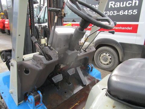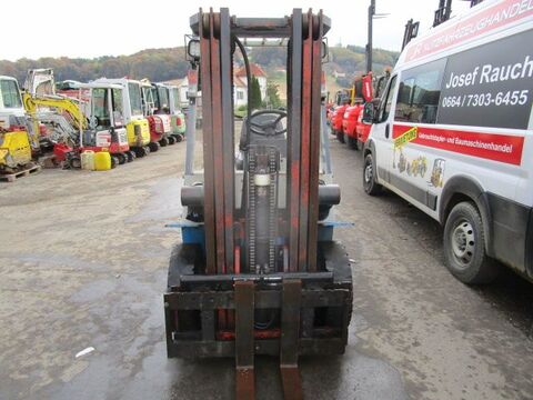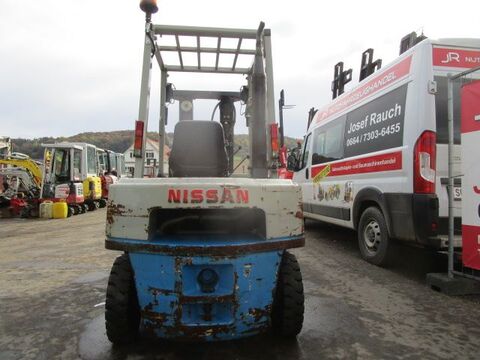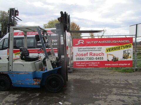 Bauart: Frontstapler / Dieselstapler, Tragkraft: 2500kg, Hubhöhe: 4300mm, Bauhöhe: 2060mm, Bereifung vorne: Vollgummi Einfach 40 - 60% , Bereifung hinten: Vollgummi Einfach 80 - 100% , Anbaugeräte: Seitenschieber, Sonderausstattung: 3. Ventil, Beschreibung: Dieselstapler NISSAN A25U - - Seitenschieber - - Triplex-Freihubmast - - Bauhöhe 2,06 m - - Hubhöhe 4,30 m - - Hubkraft 2,5 Tonnen - - Baujahr 1995 - - 12464 Betriebsstunden - - Vollgummireifen vorne ca. 50%, hinten ca. 90% - - einfache Bauweise, alles mechanisch - - Guter Zustand
