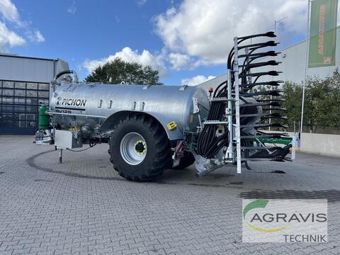 SV12R PICHON Tankwagen In Serienausstattung zusätzlich mit: BP2 Armaturen, ⌀1700, Dicke 7 mm, 12.200l, Verzinkt, Öffnung nach hinten, ⌀800 Maschinensteuerung über Joystick, Hydraulikverteilung über verkettbare Schieberventile zur Steuerung von Hydraulikzykindern und Motorbetrieb Zulassung SV10-SV12R EU-167/2013, Höchstgeschwindigkeit 40 Km/h Nationale Ergänzung SV-EU-TYpengenehmigung DE LED-Straßenscheinwerfer, Beschilderungsset für Straßeneinsatz, seitliche Positionsleuchten, vordere Positionsleuchten Vakuumpumpe PN155, 1000 U/min, automatische Schmierung mit Dosierpumpe und Öltank seitlich an der Pumpe, Hydraulik-Öltank 5l mit Halter Schaldämpfer/Ölfänger/Filter an Fakuumpumpe Unterfahrschutz Geschraubte starre Achse, 150x150, Breite 2150 mm, 10 Bolzen Pneumatikbremse mit Zweileitersystem, einschließlich Feststellbremse, automatische Bremskorrektor je nach Tankfüllstand Rad 800/65R32 10 Öffnungen, Abweichung 0 Gefederte Deichsel mit verstellbarer Höhe, Mehrfach Blattfeder. Kugelkopfkupplung, ⌀80 Homokinetischer Antriebsstrang 1''3/8Z6 1''3/8Z6 Hydraulikheber, einfachwirkende Handpumpe und Öltank Verzinktes Schutzblech-Set 1 Paar Gummi-Schmutzfänger, hinten - PICHON Logo Unterlegkeil-Set + Halterung Hecktür/Inspektionsdeckel, ⌀800, mit 2 Schanieren, zentraler Auslass, ⌀150, Industrie-Hydraulikventil, ⌀150 mit verstellbarer Öffnung, Buchse am Ventil Traktor-Kupplungshöhe = 50 cm Handventil, ⌀150, anrechtem Zusatzauslass, ⌀150, Schnellbefestigungssystem, Kugelverschluss Seitliches Rohrlager für rechten Seitenschlauch mit 2,70 m Seitliches Rohrlager für linken Seitenschlauch mit 2,70 m 010Pichon Schleppschuhverteiler 9m Technik Center Alpen GmbH