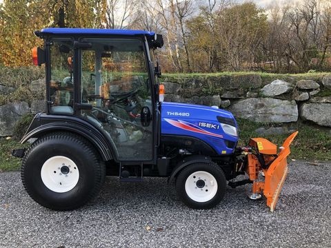 ISEKI Kleintraktor TH 5420 AHL mit Kabine: Motor: - ISEKI Common-Rail-Motor 40 PS - Wassergekühlt, unterschreitet Abgasgrenzwerte gemäß EU Stage V - Abgasnachbehandlung mit Rußpartikelfilter und Abgasrückführungsventil - Automatische Reinigung des Rußpartikelfilters, manuell startbar Getriebe: - Drei Vorgelegegruppen - Hydrostatgetriebe, einstellbare Intensität - Höchstgeschwindigkeit bis 36 km/h - Elektrischer Tempomat mit Memory-Funktion - Fahrpedal im rechten Fußraum und Wendeschaltung am Lenkrad Hydraulik: - Vier doppeltwirkende Hydrauliksteuerventile serienmäßig - Zwei Steuerhebel am rechten Kotflügel - Vier Hydraulikanschlüsse im Heck - Weitere zwei Steuerfunktionen über Kreuzsteuerhebel - Hydraulischer Heckkraftheber, gesteuert über Hebel am rechten Kotflügel Zapfwelle: - 2.000 U/min an der Zwischenachszapfwelle - 540 U/min und 750 U/min an der Heckzapfwelle - Front- und Heckzapfwellen unabhängig wählbar, elektrisch zugeschaltet - Anlaufintensität der Zapfwellen in drei Stufen einstellbar - Heckzapfwelle auch im Stationäreinsatz nutzbar Ausstattung: - Serienmäßige StVZO-Ausrüstung - Vollintegrierte Kabine mit aufstellbarer Seiten- und Heckscheibe - Rutschsichere Gummibodenmatte - Klimaanlage und Heckscheibenheizung - Verstellbares Lenkrad - Sitz mit Stoffbezug und Luftfederung Bereifung: - Vorn: 25 x 8.50 - 14 - Hinten: 13.60 - 16 Zusätzliche Ausstattungen: - Schwenkbare Kotflügel vorn - Rundumkennleuchte mit H4 Leuchtmittel - Zusatzhauptscheinwerfer - Scheibenwischer für die Heckscheibe - Hydraulikkit - Frontzapfwelle 21X25X6 - Zwei hydraulische Anschlüsse vorne links - Lagerbock für Anhängerkupplung - Maulkupplung für 200 mm Lagerbock - Schaltbare Steckdosen vorne - Werkzeugkiste - Unterlenkerfanghaken Kat. 1 - Unterbodenschutz - V-Schneeschild RSV160 - Synchronsteuerung für RSV - Bedienungsanleitung für Synchronsteuerung - Spurverbreiterung vorne und hintenBereifung vorne: 25x8.50-14
