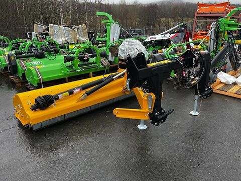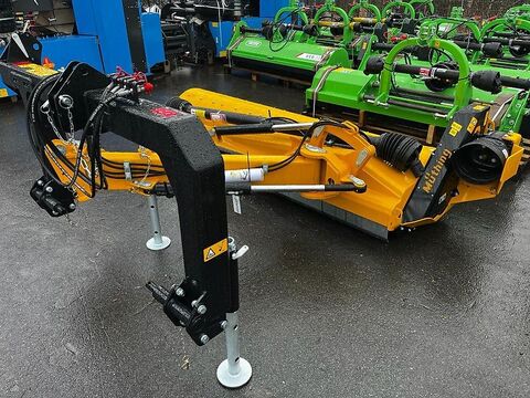 • Hydraulische Seitenverschiebung über Schwenkarm, Verschiebebereich 171 cm • Gesamtarbeitsbereich bis zu 421 cm • Arbeitsbereich von 90° nach oben bis 60° nach unten • Getriebe mit Freilauf für 540 U/min • Keilriemenschutz mit Kontrollöffnung • Patentierte automatische Anfahrsicherung über mechanisch wirkenden Raumlenker • Transportverriegelung in 90°-Stellung mit Absperrhahn • Hochvergütete M-Hammerschlegel DURAX, aus Spezialstahl geschmiedet • Laufruhiger Rotor mit speziell geformten, spiralförmig angeordneten Werkzeughaltern • Schraubbare Kurzhäckselleiste System: „Haifischflosse“ – Müthing-Patent • Große Stützwalze zur Arbeitshöheneinstellung des Mulchgeräts • Robuste Starinth Stützwalzenlagerung • Verstellbare Vario-Schneidschiene zur Einstellung des Zerkleinerungsgrades • Hardox-Verschleißkufen mit Teilungseffekt, schraubbar • Hochvergütete Pendelschutzklappen aus Federstahl • 2 Abstellstützen • Erforderliche Hydraulikanschlüsse: 2 x DW, davon 1 x DW mit Schwimmstellung • Weitwinkel-Gelenkwelle mit gehärtetem Innenrohr und Büchsenbodenschmierung – schwere Ausführung Verschleißeinlage im Gehäuse Lieferung möglich ARNEUBA Landtechnik und Fahrzeuge GmbH Vertrieb und Service