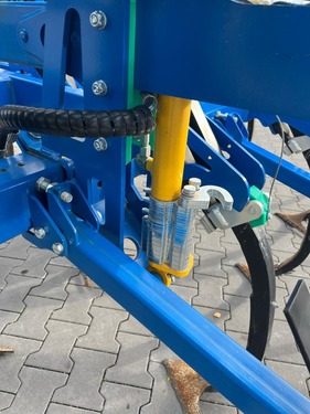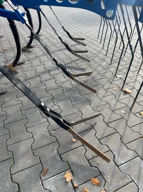 Rahmen: -Mittelteil 3 m -Seitenteile 2 x 0,65 m -Stabiler Rahmen aus Vierkantrohr 100x100 mm -3 1/2 balkiger Aufbau (ein Zinken ist zwischen den Unterlenkern angebracht, um den Seitenzug zu verhindern) -Rahmenhöhe 70 cm -Abstand Zinkenträger 70 cm -3-Punkt Anhängung: Unterlenker Kat 2/3, Oberlenker Kat.3 Klappung: -Hydraulisch klappbar 180* über Scherenklappung, die Seitenteile liegen auf dem Mittelstück auf, deshalb gibt es beim Straßentransport keine nach außenstehenden Zinken -Klappung der Seitenteile mit 2 doppeltwirkenden Zylindern, die Seitenteile sind in Arbeitsstellung hydraulisch verriegelt Zinken: -19 patentierte Zinken, gefedert über ein Blattfedersystem -Strichstabile Zinken, es ist nur ein Ausweichen nach hinten und oben möglich -Durch den ca. 1m hohen und 25 cm vor der Scharspitze liegenden Drehpunkt wird eine Tiefenfeinregulierung nach Zugwiderstand erreicht, ohne die Arbeitsstellung der Gansefußschare wesentlich zu verändern -Bei Überlastung (ab 1100 kg) spricht die Scherschraube an -Strichabstand 22 cm, Überlappung 8cm Zustreicher: -Gefederte Nivellierzinken (Zustreicher) -Die beiden äußeren Zustreicher sind manuell verschiebbar Bereifung Stützräder: -Die vordere Tiefenführung erfolgt durch Tandemstützräder 195/55R10C -Sie halbieren den Einfluss von Bodenunebenheiten, wie Mähdrescherspuren -Über Kurbel höhenverstellbar, mit Tiefenskala aus Edelstahl -Die Stützräder sind an den Seitenteilen montiert MAS226400 Preis gilt für vorhandenen Zustand. Angebot freibleibend. Irrtümer, Änderungen und Zwischenverkauf vorbehalten. Alle Angaben ohne Gewähr.Kontaktdaten: