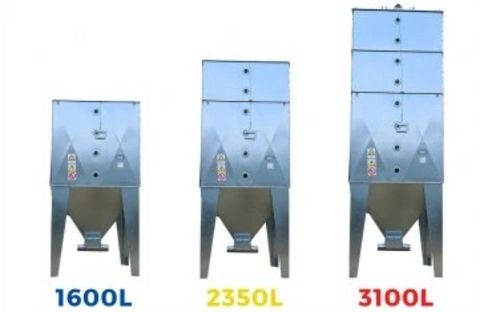 Rechtecksilos für unterschiedliche Anwendungen. 3 Größen verfügbar - 1600L ca. 1250kg - 2350L ca. 1800kg - 3100L ca. 2400kg - Grundmaße L+B+H 123cmx123cmx256cm - Höhe je Aufsatz 57,5cm Preise: Silo 1600L 1020 Euro netto Silo 2350L 1200 Euro netto Silo 3100L 1400 Euro netto Zusätzlicher Schieber seitlich 55 Euro netto Kurzfristig Verfügbar ab Lager. Verschiedene Schnecken zum befüllen, Entnahme etc. ebenfalls verfügbar. Lukas Dauser Agrartechnik