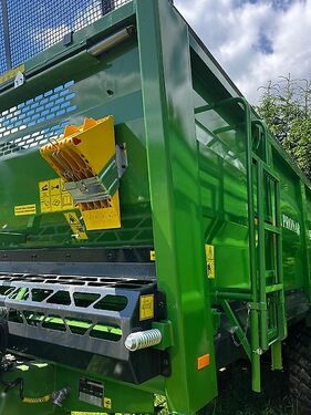Universalstreuer für Mist, Kompost, Kalk,... Pronar N262/1 Zul. Gesamtgewicht: 20000 [kg] Eigengewicht: 7200 [kg] Ladevolumen: 14 [m 3] Ladehöhe: 2800 [mm] Aufhängung: Tandem - Parabelfederung Bereifung: 600/50-R22,5 BKT RideMax Zul. Geschwindigkeit: 40 [km/h] Zapfwellenumdrehungen: 1000 [U./min] Tandem-Fahrwerk mit Nachlauflenkachse (Achsabstand 1360 mm) Vorderwand mit dem perforierten Sichtfenster Starre Deichsel mit Untenanhängung, Zugöse K80 starr Hydr. Stützfuß 2-Leiter Druckluftbremse mit ALB, Trommelbremse 406x120 Kurbelbremse Vorderes Spritzschutzgitter Verstärkte hydraulische Rückwand mit Höhenanzeiger Hydraulisch gesteuerte Schutzklappe Innengummiverkleidung der Heckklappe Förderanlage mit vier Ketten aus Qualitätsstahl (14 mm), mit hydraulischem Antrieb und stufenloser Geschwindigkeitsregulierung Beleuchtunganlage 12V Klappbare Aufstiegsleiter und Trittstufen Metalabdeckung über den Rädern ARNEUBA Landtechnik und Fahrzeuge GmbH Vertrieb und Service