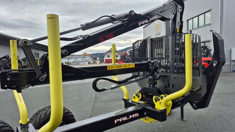 Palms Forstanhänger 9SC -Schwenkdeichsel -3 Rungenpaare -4Rad Hydraulikbremse -10 km/h Zulassung -Bereifung 400/60-15,5 auf Forstfelgen -12000 kg Höchstzulässiges Gesamtgewicht -Rahmenauszug Palms Forstkran K5,72 -Reichweite 7,2m -Hubkraft 1240kg / 4m -Stehpodest und Steuerblockhalterung -Flap-Down Abstützung B6 -55 kN Flanschrotator -Eigenölversorgung Lieferung Österreichweit möglich - Lageranhänger prompt verfügbarKontaktdaten: