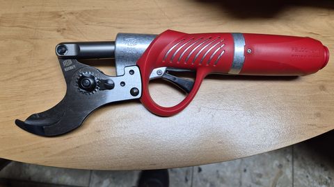 Ausstellungsgerät Felcotronic Akkuschere 820 mit 45cm Schnittdurchmesser in serienmäßiger Ausführung mit großem 2 Tages-Akku Leistungsstark, schnell, ergonomisch, effizient und zuverlässig : dieses Modell eignet sich für intensive Schneidarbeiten. Die FELCO 820 liefert problemlos einen sauberen und genauen Schnitt für Hölzer mit Durchmesser bis zu 45mm, was zu einer beachtlichen Produktivitätssteigerung führt. Das Werkzeug ist vielseitig einsetzbar und eignet sich für den Obstbau und die Forstwirtschaft ebenso wie die Gala- und Weinbau. Die Felco 820 wird über das Powerpack FELCO 880, das einen Akku und ein Ladegerät umfasst, mit Strom versorgt und gesteuert. Sie ist das Ergebnis einer sorgfältig entwickelten Ergonomie, welche die Muskeln an Armen und Schultern während eines langen Arbeitstages entlastet. Schweizer Qualitätsarbeit mit 5 Vorteilen: LEISTUNG Die FELCO 820 schneidet problemlos Durchmesser bis 45 mm. Somit müssen auch schwierig zu schneidende Hölzer immer weniger mit der Säge bearbeitet werden, wodurch der Nutzer wertvolle Zeit gewinnt und produktiver arbeitet. SCHNELLIGKEIT Die Möglichkeit, den Schneidkopf halb offen zu halten, hilft beim Anpassen der Klingenöffnung an die Durchmesser der zu schneidenden Pflanzen. Dieser Modus kann ganz intuitiv aktiviert werden und bietet eine wichtige Zeitersparnis beim Schneiden kleinerer Durchmesser. ERGONOMIE Der ideale Durchmesser der Werkzeugform sowie derdrehbare Abzugshebel garantieren eine optimale Handhabung. Die Tragevorrichtung ist leicht und dünn und bietet eine hervorragende Gewichtsaufteilung für eine angenehme Arbeit mit einem oder zwei Akkus. ZUVERLÄSSIGKEIT Der durchdachte Aufbau des Gehäuses aus gesenkgeschmiedetem Aluminium verhindert, dass Staub und Fremdkörper in den Mechanismus der Schere eindringen. Das gesenkgeschmiedete Aluminium bietet eine verbesserte Stabilität, wobei das zu tragende Gewicht reduziert wurde. Diese Faktoren machen gemeinsam mit der bewährten Qualität und Zuverlässigkeit der Marke aus der FELCO 820 ein professionelles Werkzeug, das an Robustheit und Langlebigkeit nicht zu übertreffen ist. EFFIZIENZ Die FELCO 820 verwendet ein System zur Energierückgewinnung, das auch in der Formel 1 eingesetzt wird. Dank dieses durchdachten Systems kann die Akkulaufzeit um 10 % gesteigert werdenKontaktdaten: