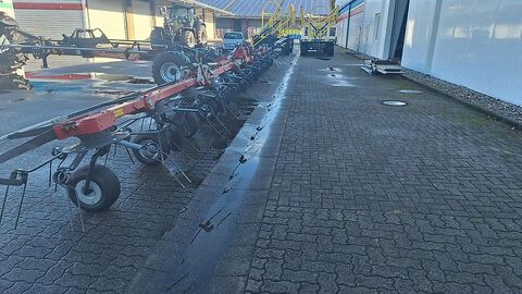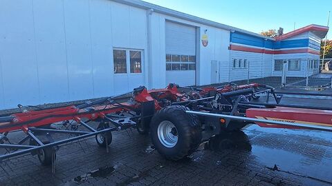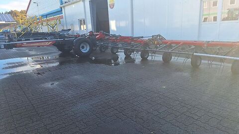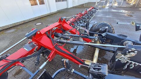 Individuelle Bodenanpassung der 14 Kreisel durch das Terra Flow System Wartungsfreier Antriebsstrang Klappbares Schwadtuch zum Grenzstreuen Flächenleistung ca. 12,5ha/h.