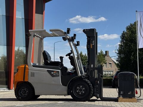 == More details (EN) == price: Price on request Very nice electric STILL forklift RCE35 2023 only 442 hours 3500 kg lifting capacity side shift + 4th extra function LED lights flashing light electrolyte level indicator panoramic mirror load protection rack handle on the rear of the overhead guard with horn dimensions: 2738x1268x2173mm. Tyres: 28x9-15 & 6.5-10** LEASE POSSIBLE THROUGHOUT EUROPE!! **We are open from Monday to Friday from 7.30 a.m. to 12 noon and from 1 p.m. to 5.30 p.m. If you would like to visit us outside office hours please contact us to make an appointmentDelivery to your location is no problem. We can also give assistance in organizing the relevant importation documents if necessary.We can also supply new and second hand accessories/parts such as tow bars tyres and wheel rims.We have made every effort to give you accurate and up-to-date information. Mistakes are however human and not always preventable. Model and specification mistakes can be made so we advise you to check these at all timesKontaktdaten: