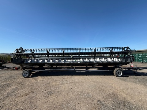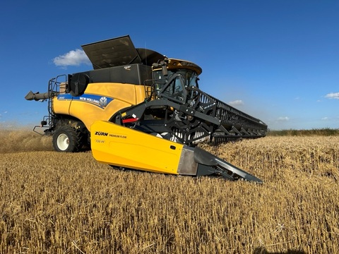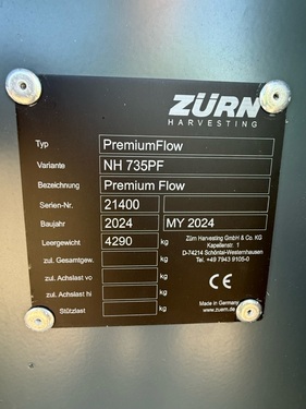 ZURN PremiumFlow 700PF belt header for New Holland combines High-capacity belt header with active crop flow control by use of individually mounted feeding elements on the rubber belt. Belt unit: low maintenance belt unit complete with cleaning drawer, automatic tensioner, tool for maintaining the belt unit; stainless steel cover plates with sealing lip; infinitely adjustable hydraulic belt drive: adjusted via hydraulic chest on the back of the header. Auger: 760mm diameter, hydraulic height control. Reel with plastic tines, ready for auto position control, auto speed control. Cutter bar: Schumacher Easy CUT II cutting system complete with double guards and guide rollers. Side knives: 2 mechanical side knives, 2 short and foldable dividers. Side knives and dividers are quick-fit without tools; holders for side knives and dividers on the back of the header. Accessories: 1 multi-coupler each for electrics and hydraulics, grain lifters, spare knife, stubble lights, toolbox. The trailer X2 is included in the price. It is a two-axle steering trailer with steering rods. Location: Princes Risborough, UK. Contact: George Dance +44 7860 828088. Visits possible only when scheduled.Kontaktdaten: