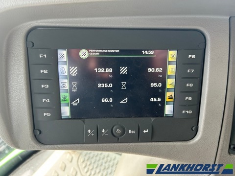 Deutz-Fahr C 7206 TS Baujahr 2023 95 Motorstunden 132 ha Fläche Variante C Optional mit RTK Lenksystem (+5000,-€ netto) Konventioneller Mähdrescher, 6 offene Schüttler mit 4 Stufen. Strohkanal mit 3 Ketten und wechselseitig montierten Einzugsleisten, elektrische Reversiereinrichtung. Dreschtrommel mit 1520 mm Breite, 600 mm Durchmesser, 8 Schlagleisten, Variator mit Drehzahlen von 420 - 1250 U/min. Turbo-Separator mit 590 mm Durchmesser, in 5 Positionen höhenverstellbar von 25 - 65 mm, Drehzahl mit 775 oder 410 U/min. Dreschkorb mit 15 Leisten, 121° Umschlingungswinkel, Korbverstellung vorne und hinten, von außen einschwenkbare Entgrannerbleche. DGR-System, beiseitige Nachdruschrotoren inklusive Rückführung auf den Vorbereitungsboden. Korntankvolumen mit 9500 l, Abtankleistung mit 90 l/sec. Motor Mercedes Benz OM936, 4V mit 6 Zyl. und 7,7 l Hubraum, Common Rail Einspritzung, Stufe V, max. Leistung 260 KW / 353 PS. Dieseltank 750 l mit AdBlue Tank 76 l. Hydrostatischer Antrieb mit 4 Gang Getriebe, mech. Anzeige der Fahrgeschwindigkeit, Load Sensing Hydraulikpumpe für alle hydr. Antriebe. Commander Cab V mit angebauten Scheinwerfern und Rundumleuchte. CCM (Combine Control Management) mit 7" Touchscreen Display für Bedienung, Einstellung und Überwachung, Klimaanlage und eingebaute Heizung. Ohne Schneidwerk. BASISLIEFERUMFANG I9002 Topline Kabinenausrüstung K3002 luftgefederter Fahrersitz K5002 Bordcomputer K7004 manuell verstellbare Außenspiegel K8001 Windschutzscheiben Waschanlage Ka002 Luftkompressor (60 ltr.) Km002 LED-Scheinwerfer am Dach hinten zur Kornentladung Mähwerk + Zubehör L2000 Strohkanal mit Gelenkwellenabtrieb L3001 Multikupplung für Schneidwerksanbau L7000 Halmteiler optional La004 3-RILLEGER ANTRIEB FUER MAIS Le001 Förderkanal mit Einzugsketten Lj001 Steinfangmulde Druschausrüstung N1006 Dreschkorb T14, Drahtabstand 14mm Zusätzliche Siebe P2001 Standard-Vorsieb fixiert Räder + Achsen R1003 verstellbare Lenkachse Länderausrüstungen T9009 Bedienungs-u. Wartungsanleitung Deutsch Maisausrüstung Vb001 Schutzgitter für Luftansaugung Raps- Und Sonnenblumen-Ausrüstung W0999 mit Vorbereitung für Rapsmähwerk Weitere Ausrüstungen Reis Q0004 Korntank Z0999 Dreschtrommel - sh. generelle Kenndaten Z2000 Standard-Schneckenausrüstung (Elevator, Überkehr, KT-Füll- und KT-Entleerung) L6002 DFE-Auto-Control (MD-seitig) ZUSATZAUSSTATTUNG K2006 4 Arbeitsscheinwerfer (LED) an Aussenspiegeln K9005 Rückfahr, Anhängekupplung und Auslaufrohrkamera - farbig / Infrarot, mit 7"-Display Kb002 Seitenarbeitsscheinwerfer (LED) Ke001 Wartungsbeleuchtung ( 2 Scheinwerfer je Seite und einer im Motorbereich) Kh001 Kühlbox TROPICOOL (21 ltr.) Kj002 automatische Klimaanlage L5003 Elektr.hydraul.Schnittwinkelverstellung - nur in Verbindung mit Autocontrol möglich, nicht in Verbindung mit Balance-Technik - bei Normal-Maschinen empfohlen L9006 ein zusätzlicher Zylinder Q1003 Korntankrohr lang - 5,60 m) (Empfohlen bei Mähwerksbreiten ab 7,20m) Q3001 Auslaufsperre am KT-Rohr Transportwagen + Anhängekupplungen M7007 vollautom. Anhängekupplung mit Fangschirm (für GER und EXPORT)- sollte bei Kamera K9004 und K9005 gewählt werden. N4001 Reduziergetriebe N210-620 1/min (elektr. überwacht) (für Sonnenblumen- und Bohnendrusch und für Rapsdrusch empfohlen) P0002 elektrische Siebverstellung, obere und untere Siebe P5001 2 Verstellsiebe Z23/Untersieb (Kurzstroh) anstelle Standard-Untersieb R2044 Bereifung vorne: 800/65R32" ET-25/-85 Mitas (Aussenbreite 3485mm) anstelle Basisbereifung R3020 Hinterbereifung 500/70R24 165A8 ET-80 Mitas Häcksler + Zubehör U0001 Strohhäcksler intregriert (KPAB) U4002 Spreuverteiler Heuling U6014 LA. Deutschland (Erg. Paket Überbreite) Schneidwerk: LI053 Schneidwerk HMW II 6,30m Arbeitsbreite (SN: 1133043978) Baujahr: 2018 M6011 Transportwagen (2212009112)Kontaktdaten: