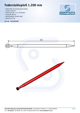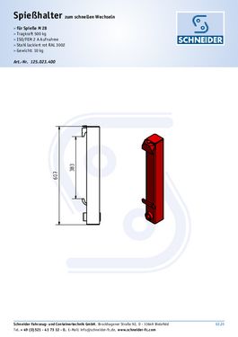 Schneider Zinkenträger / Spießhalter für Palettengabelträger FEM II mit Schwerlastzinke 1200 mm lang Gewinde M28 max. Belastung 500 kg RAL 3002 Art.Nr.: 125023400 + 125028082 Preis pro StückKontaktdaten: