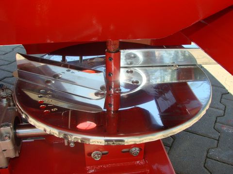 == Weitere Informationen (DE) == Jar-met Düngerstreuer JMS 800 Symbol: N020/8 Zulässige Tragfähigkeit: 800 kg Eigengewicht: 240 kg Abmessungen (L × B × H): 1550 × 1430 × 1200 mm Arbeitsbreite: 10–21 m Zapfwelle: 540 U/min Geschwindigkeit: 4–13 km/h Mechanische Rührwerke stabilisieren den Schüttfall Streumechanismus aus Edelstahl Hydraulische Steuerung der Schieber aus der Kabine Scheiben Ø 570 mm (je 2 Schaufeln) sorgen für ein gleichmäßiges Streubild. Die Schaufelverstellung definiert die Arbeitsbreite. Ölwechsel in den Getrieben alle 200 h, Schmierung der Zugstangen alle 10 h Sichere Arbeit auf Geländeneigungen bis 8°; an den Wendeköpfen die Schieber schließen. Zusatzausrüstung gegen Aufpreis: Behälter aus säurebeständigem Stahl Plane Plane mit klappbarem Gestell Grenzstreuvorrichtung LED-Straßenbeleuchtung Zapfwelle == More details (EN) == Jar-met Fertilizer Spreader JMS 800 - Model: N020/8 - Permissible load: 800 kg - Net weight: 240 kg - Dimensions (L × W × H): 1550 × 1430 × 1200 mm - Working width: 10–21 m - PTO: 540 rpm - Speed: 4 - 13 km/h Mechanical agitators stabilizing material flow Stainless steel spreading mechanism Hydraulic shutter control from the cab Ø 570 mm discs (2 blades each) ensure even spreading. Blade adjustment defines working width. Oil change in gearboxes every 200 h, linkage lubrication every 10 h Safe operation on slopes up to 8°; close shutters when turning. Optional equipment (extra charge): - Stainless steel hopper - Tarpaulin - Tilting tarpaulin with frame - Border spreading attachment - LED road lighting - PTO shaftKontaktdaten: