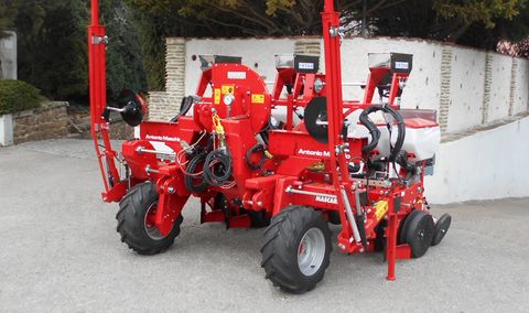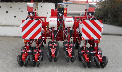 Mascar-Einzelkornsämaschine Maxi-5 8-reihig mit hohem Säelement (für Rüben, Mais, Sonnenblumen, Kürbis etc.) und hydraulisch verschiebbarem Rahmen (45-75 cm Reihenabstand), Doppeltiefenführungsrollen, Alu-Zwischenandruckrollen, V-Gummi-Andruckrollen 2", zentrales Wechselradgetriebe (18 Gänge), mechanische Reihenauskuppelvorrichtung, hydraulische Mittelspuranzeiger, Antriebsräder 23 x 10.5-10, Gelenkwelle, Beleuchtung und Mikrogranulat-Streuer. Bedienterminal Dorado mit Hektarzähler, Reihen-Säüberwachung, Reihenabschaltung, Ausbringmengenkontrolle (Körner) pro Hektar, Säabstandsanzeige etc. Abbildung ist Symbolbild von 6-reihiger Maschine! Beantragen Sie bis zu 20 % Investitionsförderung für diese angebotene Maschine! Fördermaßnahme "Investitionen in die landwirtschaftliche Erzeugung (73-01)". Nähere Informationen erhalten Sie bei Ihrer zuständigen Bauern- bzw. Landwirtschaftskammer. Unser Verkaufsteam zeigt Ihnen gerne persönlich die angebotene Maschine. Vereinbaren Sie mit unseren Mitarbeitern einen Termin oder besuchen Sie zu den angeführten Geschäftszeiten. Wir stehen Ihnen gerne zur Verfügung.Reihenanzahl: 8