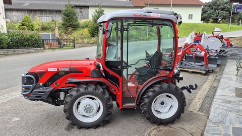 Antonio Carraro Traktor TN 5800 TORA mit XL-RedCab-Kabine mit Klimaanlage Aussenbreite nur 1,25m ! 4-Zylinder YANMAR Motor StufeV 52PS Common-Rail Direkteinspritzung und starkem Drehmoment von 170Nm; 16V/16R - 30km/h Synchron-Wendegetriebe, Zapfwelle 540 und 750U/min Sparzapfwelle, in Ölbad laufende Doppelscheibenbremsen, Hydraulikanlage mit einer enormen Hubkraft von über 2.100kg, mit über 50l/min Leistung und 4 doppeltwirkenden Steuergeräten, mehrfach verstellbare Unterlenkerschnellkuppler, Komfortsitz mit Luftfederung, Bullbar vorne, 2+2 Ballastgewichte vorne,... ACTIO™ - der integrale Schwingrahmen von AC, durch die konstante Bodenhaftung wird die volle Motorkraft für mehr Leistung auf den Boden übertragen und vor allem für ihre Sicherheit kleben die Räder dadurch förmlich am Boden. Das Gewicht desTraktors ist zu 60 % auf derVorderachse und zu 40% auf der Hinterachse verteilt. Beim Anbau von Geräten sinddie Gewichte gleichmäßig (50 %) auf beide Achsen verteilt. Der TN 5800 mit 4 gleich großen Rädern bietet die notwendige Bodenhaftung, Wendigkeit und Kompaktheit für sichere Arbeitseinsätze auf jedem Untergrund. Es verfügt über Doppelscheibenbremsen im Ölbad und ein integriertes mechanisches Superbrake- System. Dank der leistungsstarken Hydraulikanlage vom Load Sensing Typ mit einer Förderleistung von über 50 l/min kann der Traktor mit vielfältigen auch hochtechnisierten Arbeitsgeräten kombiniert werden. Die zahlreichen Hydraulikanschlüsse ermöglichen den praktischen Anbau einer Vielzahl von Arbeitsgeräten. Die mögliche Konfiguration mit unterschiedlichen Bereifungen je nach individuellen Kundenanforderungen macht ihn noch vielseitiger. Der äußerst bequeme Fahrerplatz weist keinerlei Hindernisse im Mitteltunnel auf, um einen einfachen Einstieg und höchsten Bedienkomfort zu gewährleisten. Jetzt zu besichtigen bei Landtechnik BINDER ihrem Antonio CARRARO Stützpunkt-Center in NÖ ! Vertrauen auch Sie dem Marktführer bei Traktoren mit gl. gr. Rädern, mit einem Martanteil von über 80% !Bereifung vorne: 250/80R18