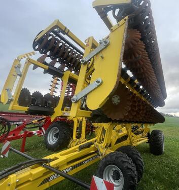 Gezogen, Hydraulische Klappung, Stützfuß / -rad ________ Fahrwerk, hydr. klappbar, Beleuchtung, Zugöse, hydraulische Tiefenverstellung, gezackte Scheiben, X-Form, Trapez- ringwalze, AB 12,40mKontaktdaten: