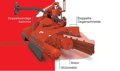 Beleuchtung/Warntafeln, Frontanbau, Heckanbau ________ Maschio Schmetterlingskombination NEU ab Lager 2024/2025 Beschreibung: - Heckeinheit: Butterfly-Mulcher Delta 8300 Zur Verwendung mit passenden Frontmulcher (Option) siehe Anlage Bild / Zeichung - Universal-Dreipunktbock Kat. III und IV-N - seitliche direkte Gelenkwellen mit Schutz - Getriebe für 1000 Upm, Doppelantrieb mit Freilauf - 2x seitlicher Antrieb über je 5 Keilriemen mit externer Spannvorrichtung - 2 Mulchkörper à 3,10m Arbeitsbreite mit HD-Rotor und Hammerschlegeln Typ 14 - 2 Gegenmesser pro Mulchkörper - Verschleißbleche - Verstellbare und selbstreinigende Nachlaufwalzen mit 220mm Durchmesser - Hydrauliisches Floating-System - Federsicherungssystem - Hydraulische Klappung für Transportbreite 2,98m - Transportsicherungsverriegelungen - Eisentransportstützräder - Gleitkufen - Stützfüße - vorderer PVC-Schutz mit Schutzketten - CE-Schutzvorrichtungen - Beleuchtung mit Warntafeln - Walterscheid-Gelenkwelle Intern: 110539 MASCHIO Mulchgerät in 2,80m Arbeitsbreite für Schlepper bis 200 PS, BUFALO 280 Front- und Heckmulcher Lagermaschine 2025, sofort lieferbar! - hydraul. Seitenverschiebung - Doppel-Dreipunktbock KatII, - Getriebe 1000 UpM mit integriertem Freilauf und aufgelöstem Antriebsstrang - 2 Gegenschneiden - Vorderer Steinschutz mit Ketten - Seitl. Welle im Ölbad mit 5 Keilriemen - Externe Keilriemenspannvorrichtung - Walze 220 mm Durchmesser - Rotordrehzahl 2025 U/min, Rotor - Arbeitsdurchmesser 465 mm - Hammer-Schlegel Typ 14, - Walterscheid Gelenkwelle - Gewicht: ca. 1.300 kg Intern: 111499 BUFALO ist ein reversierbarer Offset-Mulcher mit einer HEAVY-DUTY-Konstruktion für die intensive Zerkleinerung von dicken Rückständen und für den Umgang mit unbearbeitetem Boden, mit Arbeitsbreiten von 2,2 bis 3 m, ausgelegt für die Arbeit mit Traktoren mit einer Leistung im Bereich von 100 bis 200 PS. Reversibel für jeden Bedarf Die Baureihe der MASCHIO-Umkehrmulcher zeichnet sich durch große Zuverlässigkeit und Vielseitigkeit aus, da die Möglichkeit besteht, das gleiche Gerät vorne oder hinten montiert gleichermaßen effizient einzusetzen. Stark und zuverlässig Der doppelwandige Rahmen und die doppelte Gestängebefestigung mit Front-/Heckgetriebe mit einer Drehzahl von 1.000 U/min ermöglichen einen schnellen Konfigurationswechsel. BUFALO bietet dauerhafte Zuverlässigkeit, unter anderem durch den elektronisch ausgewuchteten Rotor und den Zahnriemenantrieb. Mit einer Arbeitsbreite von bis zu 3 m liefert er hohe Arbeitsleistungen (ha/h). Der Rotor mit spiralförmig angeordneten Werkzeugen auf schadenverhütenden Stützen erlaubt den Einsatz auch auf steinigem Boden. Zusammen mit den serienmäßig verzahnten Gegenmessern, die im Schneidraum verschweißt sind, wird ein perfektes Mulchen erreicht. Nachtarbeit BUFALO kann mit leistungsstarken Scheinwerfern ausgestattet werden, die bei der Ausleuchtung des Arbeitsbereichs helfen und beim Transport für die Scheinwerfer des Traktors einspringen, wenn diese durch das Arbeitsgerät verdeckt sind. Kameras komplett mit 7"-Bildschirm helfen, die Straße vor dem Traktor bei Fahrten auf der Straße besser sichtbar zu machen. Standort: 36088 Hünfeld - Michelsrombach Breites Mehrzweck-Mulchgerät DELTA Effizienz und Langlebigkeit für professionelles Mulchen Die perfekte Wahl für Lohnunternehmer und große landwirtschaftliche Betriebe, die ein breites, wartungsarmes und zuverlässiges Mulchgerät suchen, um große Flächen ohne Ausfallzeiten zu bearbeiten.Kontaktdaten: