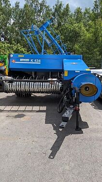 Fortschritt Hochdruckpresse K434 *NEU* Farbe rot oder blau Technische Daten: • Ballenmaß: 36 x 46 cm • Ballenlänge 0,4 - 1,20 m • Antriebsgeschwindigkeit: 540 upm • Kolbenhübe/min 79-86 • Pick Up Breite 1,80 m • Gewicht 1520 kg • Breite 2,50 m • Traktorleistung ab 30 PS • Arbeitsprinzip: Geradeschubkolben • Bindematerial: Polypropylen alternativ Sisal Standardausstattung: • 2fach Fadenbindung • Knoter = Raussendorf • Antrieb mit automatischer Überlastsicherung • PickUp mit hydr. Aushebung und Lufttastrad • Ballenablageblech • Weitwickelgelenkwelle • Zapfwellendrehzahl 540upm • hydraulische Schwenkdeichsel Bewährte Fortschritt Qualität, hergestellt in Sachsen/Deutschland Option des Ladesystems: Parallelschurre (mit Aufpreis) oder gerade Ladeschurre nach hinten mit Anhängevorrichtung Rollenniederhalter verfügbar ARNEUBA Landtechnik und Fahrzeuge GmbH Vertrieb und Service