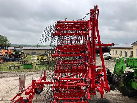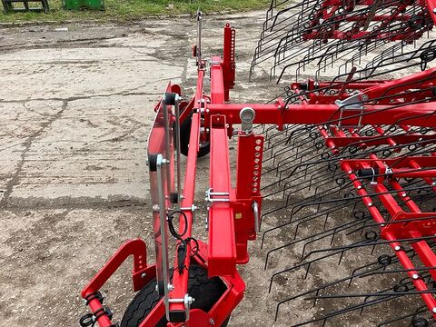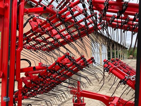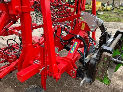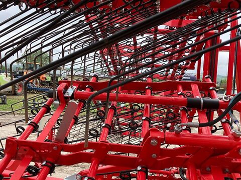 Direkt gefederte Zinken mit hohem Durchgang und 2,5 cm echtem Strichabstand Zinken sollen auf Griff stehen für bestmögliche Arbeit Konstanter Zinkendruck über die gesamte Arbeitsbreite durch hydraulischen Zinkendruckausgleich Konstante Arbeitstiefe aller Zinkenreihen am Striegelfeld durch Feldfixierungen vorne und hinten Arbeitstiefe bis zu 3 cm, Saatkorn darf nicht gelockert werden Langloch für optimale Bodenanpassung auch bei Unebenheiten Ziehen des Striegels anstatt tragen oder heben Hohe Laufruhe des Striegels durch kompakte Bauweise Pendelachse zum Ausgleich von Bodenunebenheiten Nicht die Gabel sondern das Striegelfeld sollte waagrecht zum Boden eingestellt sein Auflockerung der Fahrspur durch extra Striegelzinken hinten bei den Nachlaufrädern