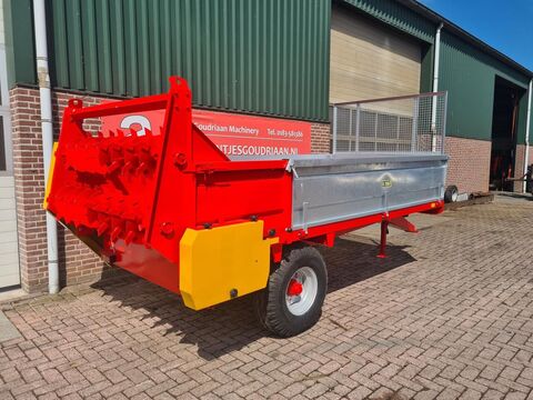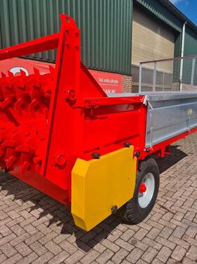 == Overige details (NL) == Meststrooier • Laadvermogen 4 ton • Afmetingen 3850x1750x550mm • Bodem ketting mechanisch instelbaar • Dubbele rondsel • Verlichting • Steunpoot • Rondsels kunnen er af en vervangen worden door een klep • Compleet met aftakas Staat: Nieuw Bouwjaar: 2024Kontaktdaten: