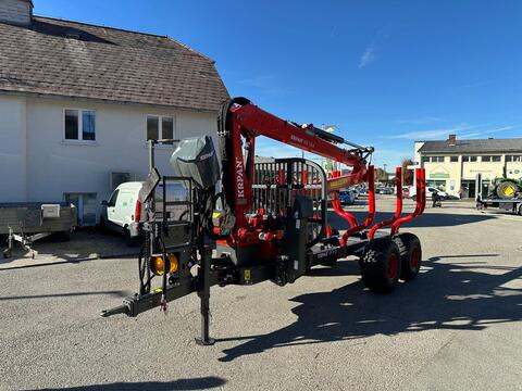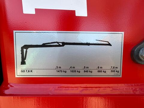 Klassifizierung: Neumaschine; zul. Gesamtgewicht (kg): 9000; Achsenzahl: 2; Kran: Ja; Kranreichweite: 7600; Hubkraft: 500; Anzahl Teleskop: 1; Anzahl der Rungen: 4; Anhängeart: Anhängevorrichtung; Typ der Anhängerbremse: Hydraulisch; Stehpodest: Ja; Eigenölversorgung: Ja; ausziehbarer Rahmen: Ja; schwenkbare Deichsel: Ja; Beleuchtung: Ja; Greiferart: Holzzange; Pratzenabstützung: Ja; Weitere Maschinenmerkmale: +Kran: 7,6 m +Hubkraft bei 7,6 m: 500 kg +Flop-Down Abstützung +Greifer: GR 130 +Rotator 45kN +Eigenölversorgung +hyd. Bremse +Bereifung: 400/60R15,5 +Schwenkdeichsel +Ausziehbarer Rahmen +Motorsägenhalterung +WerkzeugkisteReichweite Kran (m): 7,6