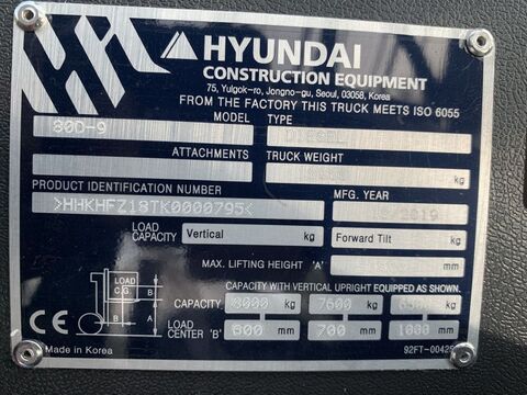 Bauart: Frontstapler / Dieselstapler, Tragkraft: 8000kg, Hubhöhe: 5570mm, Bauhöhe: 3150mm, Freihub: 1640mm, Gabellänge: 2400mm, Bereifung vorne: Luft Zwilling , Bereifung hinten: Luft Einfach 80 - 100% , Anbaugeräte: Seitenschieber, Zinkenverstellgerät, Anbaugerätebeschreibung: MEYER Wellen geführter Seitenschieber und Zinkenversteller Sonderausstattung: 3. Ventil, 4. Ventil, Arbeitsscheinwerfer hinten, Arbeitsscheinwerfer vorn, Heizung, Vollkabine, Klimaanlage, Vollfreihub, CE Zertifikat, Sonderausstattungbeschreibung: Nasse Lamellenbremsen Kippkabine + Heizung + Klimaanlage Motor Cummins QSF3.8 - Stage IV Low Noise Pump Treiber Detection System + Hugerüst 4. hydraulische Leitung V (integriert in Hubgerüst) Grammer Sitz ohne SIitzheizung, OP, arm rest & bacSk orelids tTires Nexen (4/2) 4 Ventilen an der MaschineKontaktdaten: