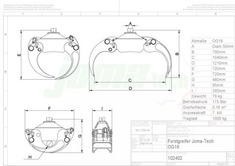 FARMA Forstkran C4,6D G2 mit Forstgreifer OG16 & 3-Tonnen-Rotator (Steuerung nicht im Lieferumfang enthalten – diese kann separat angeboten werden) Beispiel: (ab Lager lieferbar) Hochwertiger Euro-Steuerblock 70 Liter / min 315 bar Art. Nr. 1026 Preis: 1650,00 euro inkl. MwSt. Kraftvoll. Präzise. Zuverlässig. Der FARMA Forstkran C4,6D G2 ist ein leistungsstarker Allrounder für den professionellen Einsatz in der Land- und Forstwirtschaft. Mit seiner robusten Bauweise, einer Reichweite von 4,6 Metern und seiner durchdachten Geometrie eignet sich der Kran ideal für den Aufbau auf Rückewagen, Holzanhänger oder als stationäre Lösung auf dem Hof. Dank der stabilen Bauweise der Generation 2 (G2) überzeugt der Kran mit hoher Langlebigkeit, exzellenter Beweglichkeit und einem hervorragenden Verhältnis von Eigengewicht zu Hubkraft. Ausstattung & Lieferumfang ✔️ FARMA Forstkran C4,6D G2 – robuste Schwenkeinheit mit 2-Zylinder-Drehsystem ✔️ Frostgreifer OG16 – stabiler Greifer mit großem Öffnungsbereich, ideal für Stammholz ✔️ Rotator (3 Tonnen) – langlebiger Drehmotor für sicheres und gleichmäßiges Arbeiten ❗ Steuerung nicht im Lieferumfang enthalten – kann optional separat mitgeliefert werden (z. B. mechanisch oder elektrisch) ⚙️ Technische Daten (C4,6D G2) Reichweite 4,6 m Hubkraft ca. 400 kg bei max. Auslage Schwenkwinkel 370° Schwenkmoment 7,5 kNm Schwenkwerk 4-Zylinder Rotatoraufnahme 50 mm Eigengewicht (inkl.Greifer OG16) ca. 515 kg Passend für Rückewagen / Holzanhänger der 6–9 t-Klasse (Angaben können je nach Ausstattung leicht variieren.) Anwendungsbereiche Forstwirtschaft / Holzernte Ladekran für Stamm- und Kurzholz Beladung von Anhängern oder Transportfahrzeugen Einsatz auf Rückewagen, Traktoren oder stationären Gestellen Besonderheiten Hochwertige FARMA G2-Technologie für langlebige Präzision Optimiertes Gewichtsverhältnis für maximale Stabilität Kompakte Bauform für enge Arbeitsbereiche Greifer OG16 mit großem Öffnungswinkel – ideal für Mischholz Rotator (3 t) endlos Steurung und Abstützung – auf Wunsch erhältlich Lieferumfang FARMA Forstkran C4,6D G2 Forstgreifer OG16 3-Tonnen-Rotator (Steuerung nicht enthalten – kann separat angeboten werden) Selbstverständlich erhalten Sie eine Rechnung mit ausgewiesener MwSt. Der angegeben Preis ist brutto inkl. 19% MwSt. Der Versand erfolgt auf Anfrage. Bitte geben Sie dazu Ihre genaue Adresse an. FARMA & BIGAB by Fors MW Tule 30 76505 Saue Estland E-Mail: - Website: -
