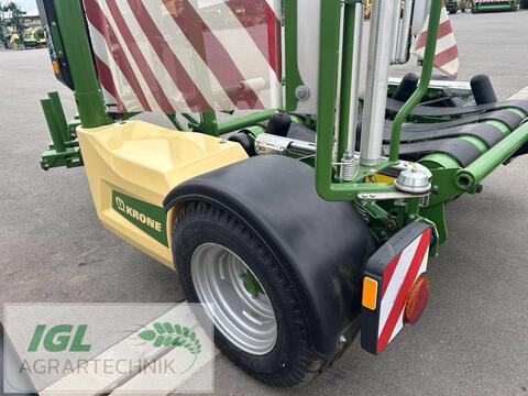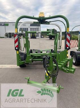 Untenanhängung (Öse) ________ Automatikfunktion für eine komfortable Steuerung des gesamten Arbeitsablaufs von der Aufnahme bis zur Ablage des Ballens Ideale Folienüberlappung auch bei wechselnden Schleppern durch positionsgesteuerten Wickelprozess (keine Zeitsteuerung!) Wickeltisch aus vier festen Gewebebändern mit bis zu sechs Führungsrollen für zuverlässiges Drehen der Ballen Werkzeuglos verstellbare Aufnahmeeinheit mit robustem Ladearm für sichere Aufnahme von unterschiedlich großen und schweren Ballen Fahrgestell mit niedrigem Schwerpunkt für hohe Fahrstabilität gerade in Hanglagen Doppelwickler mit reversierbarem Wickelarm und bis zu 40 U/min für maximale Tagesleistungen und höchste Silagequalität. Gezogener Wickler mit Doppelwickelarm Länge: 3.450 mm, Breite: 2.540/2.688 mm, Höhe: 3.068 mm (bei 17" Bereifung)Geschwindigkeit Wickelarm: bis 40 U/minBallendurchmesser: 1.000 - 1.650 mmBallengewicht: max. 1.750 kg (beim Sammeln 1.200 kg je Ballen)Erforderliche Hydraulikanschlüsse: 1x EW und druckloser Rücklauf (Optional Load-Sensing-Anschluss)Ölmenge: ab 22 l/min bis 45 l/min für maximale Geschwindigkeit Anbau Unterlenkeraufnahme Kat. II Hydrauliksystem Druckumlauf (Load-Sensing-fähig) Wickeleinrichtung Ladearm für unterschiedliche BallendurchmesserDoppelwickelarm (mit bis zu 40 U/min reversierbar)Wickelarmantrieb mit integrierter Bremse und Drehgeber für exakte Positionierung des WickelarmsWickeltisch mit vier GummigewebebändernVier Ballenführungsrollen Wickelfolie FolienrisserkennungFolienstretchung wahlweise auf 55 % oder 70 % einstellbarFolienhalte- und Schneidvorrichtung Weitere Ausstattung Beleuchtung nach StVZO für StraßenfahrtKomfort Bordelektronik 1.0 ISOBUS-fähig, ohne Bedienterminal (bei nicht ISOBUS-fähigem Schlepper ist B290 zusätzlich zu wählen. Falls kein ISOBUS-Terminal vorhanden ist, ist B412, B413 oder B308 zusätzlich zu wählen!) Maschine: 1 x 18314 Ballenwickelgerät, EasyWrap 165 T (BW301-20) Komponenten: Einsatzland 1 x EL_DE Deutschland Bereifung 1 x 0220 Bereifung 15.0/55-17 Achsen 1 x 0320 Einzelachse ohne Bremse Variantengruppe 01 1 x D D Deutschland Terminal DS 500 In-cab 1 x B412 Ja KRONE ISOBUS Nachrüst-Kit für den Traktor (Nachrüstung einer Spannungsversorgung über ISOBUS-Anschluss und eines In-Cab-Anschlusses) 1 x B290 Ja Zusätzliche klappbare Folienrollenhalter für 8 Folienrollen 1 x B504 Ja Zusätzliche Führungsrollen 1 x B507 Ja Handbedinung außen 1 x B508 Ja Ballentuch 1 x B512 Ja LED-Arbeitsbeleuchtung (Beleuchtung der Bereiche: Aufnahme und Wickeltisch) 1 x B505 Ja Lagermaschine aus Baujahr 2023 1 x Mit Garantie wie NeumaschineKontaktdaten:
