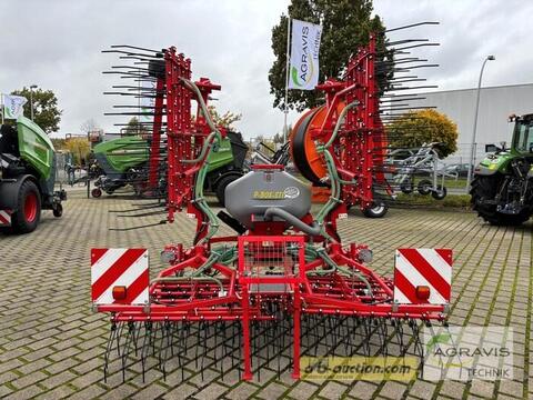 PNEUMATICSTAR PRO 600 (0010) neuer Grünland- und Untersaatstriegel (0020) Arbeitsbreite 6,00 m, mit hydr. Kalppung (0030) Transportsicherung mittels Fanghaken (0040) am Mittelrahmen 2 Stück Zwillingsräder (0050) Außenflügel je 1 Rad zur Tiefenführung (0060) 4 Stück Strigelfelder mit hydraulischer (0070) Niveauausgleich, (0080) a 60 Zinken mit 2,5 cm Strichabstand (0090) Zinken: 8 mm Durchmesser /490 mm lang, (0100) 6-reihige Zinkenanordnung, (0110) gefederte schwere Frontstreifbleche (0120) dreiecksförmig Vor den Stützrädern (0130) laufend, (0140) Sägerät P-Box-STI, Säwalze mit (0150) elektrischem Antrieb - SPEED-TRONIC (0160) Steuerung, (0170) geschwindikeitsgeregelt über Radsensor, (0180) Hubwerksignal über Oberlenkersensor (0190) elektrisches Doppelgebläse 12 Volt - (0200) 3-poliger Traktorstecker (0210) (25 Ampere erforderlich), (0220) Mengenverteilung über eigenes Särad pro (0230) pro Schlauch, je eine Dosierwalze mit (0240) Feinverzahnung (Type C) und (0250) Grobverzahnung (Type E), (0260) Tankvolumen 300 Liter, Abdrehwanne mit (0270) Abdrehblech, Befülltreppe, (0280) Anbaukatergorie: II Durchmesser 28 (0290) SPEED-TRONIC Steuerung (0300) Kunststofftank 265 Liter anstatt (0310) Stahltank für P-BOX (0320) Zinken 490 mm lang, Durchmesser 10 mm (0330) pro Feld anstatt Serienzinke (0340) Mechanisches Gebläse mit Anbaukonsole (0350) und Gelenkwelle statt 2 elektrische (0360) Gebläse für PNEUMATICSTAR-PRO 300 + 600 (0370) Leermelder für Saatguttank bei STI (0380) Ausführung (0390) Abdrehtaster hinten am Sägerät (0400) Warntafeln mit Halter und (0410) LED-Beleuchtung nach hinten AGRAVIS Technik Münsterland-Ems GmbH